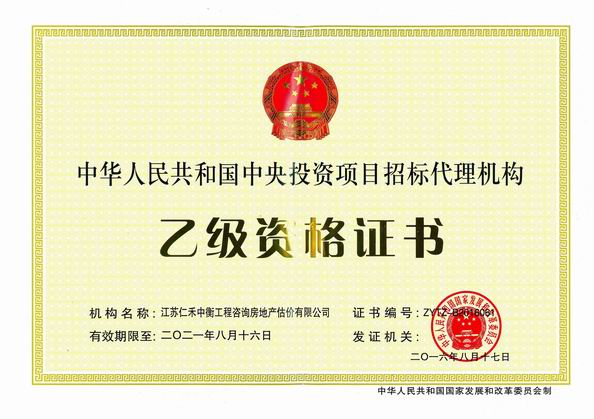 • 招標代理甲級資格證書